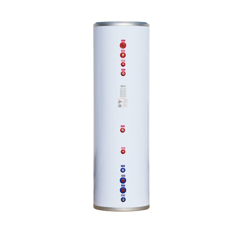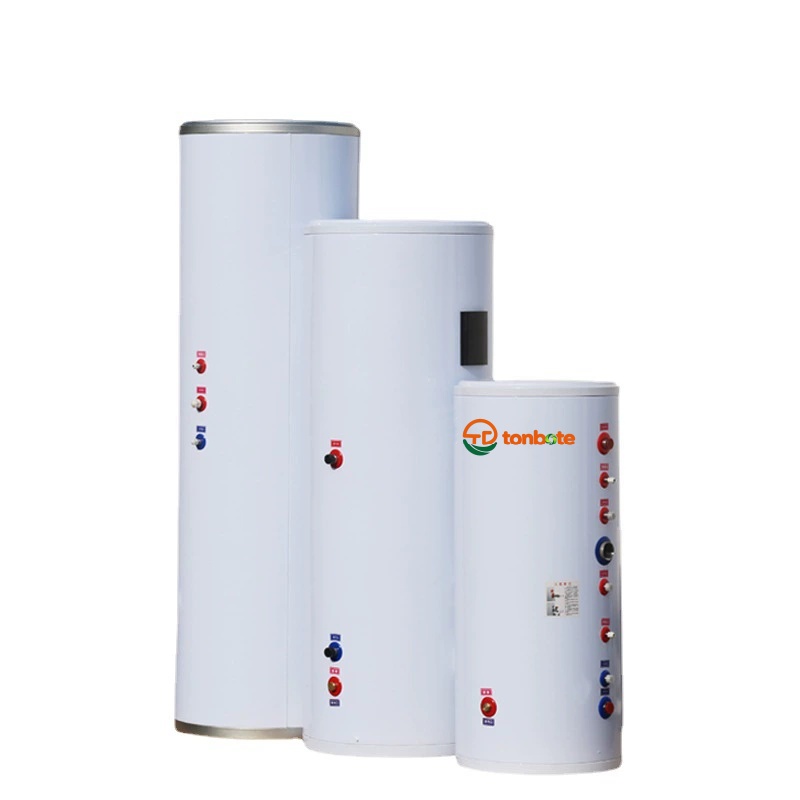 10. The buffer water tank is connected in series in the system. The water flows in from the top and out from the bottom, placed between the end return water and the water pump.