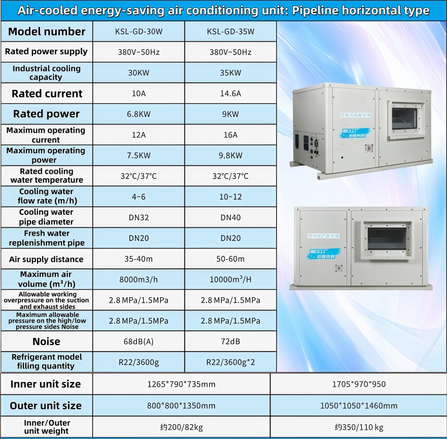 1. Low power consumption, large cooling capacity. Compared to traditional air-cooled first-level energy-efficient air conditioners, it saves 40-50% of energy.